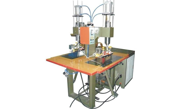 双头脚踏标准式高频焊接机封口机:操作工作台面板分别为机头的两边,操作方式主要是由操作人员右脚踏定位和左脚开关,焊接过程由时间自动控制,左右机头交替使用。